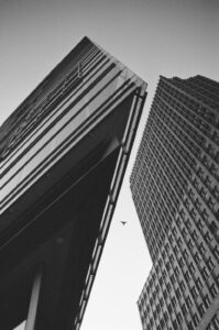 As for black and white, I simply noticed that I “see” the scene much better in black and white, rather than in color. Especially, if I would like to capture the strong urban vibe as in this series. Also, black and white film does not depend on the sun as much as color. In my case, it ensures more versatility and expands the vision. But I also shot on color film, especially on sunny days.